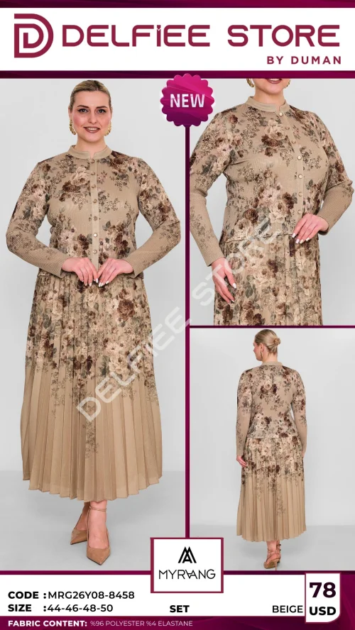 Комплект с юбкой и кофтой, бежевый с цветочным принтом