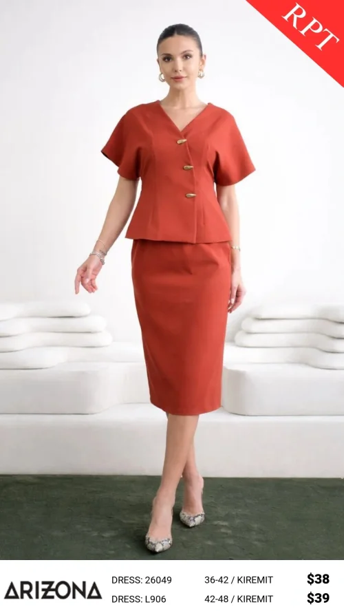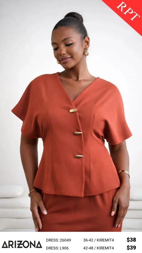 Комплект: топ с пуговицами и юбка-карандаш, терракотовый