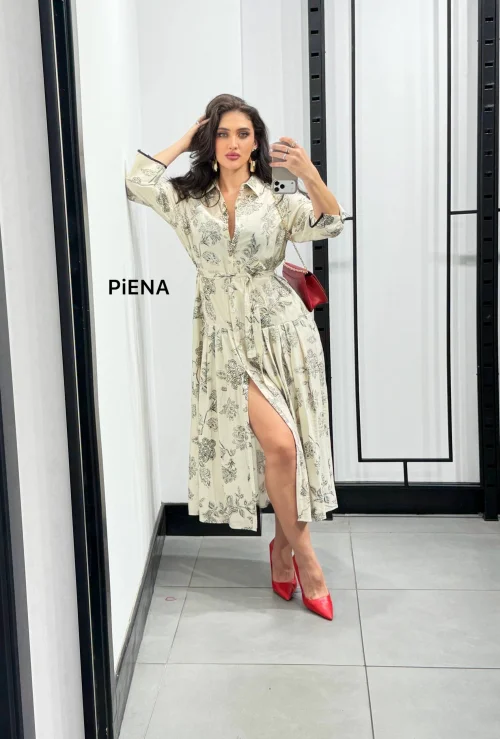 Платье-рубашка с цветочным принтом и поясом, миди