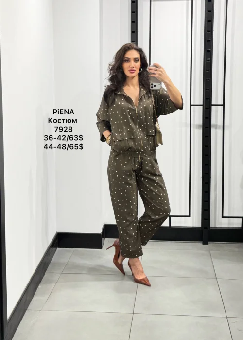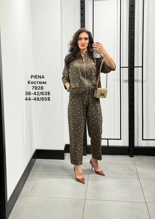 Костюм в горох: куртка на молнии и брюки