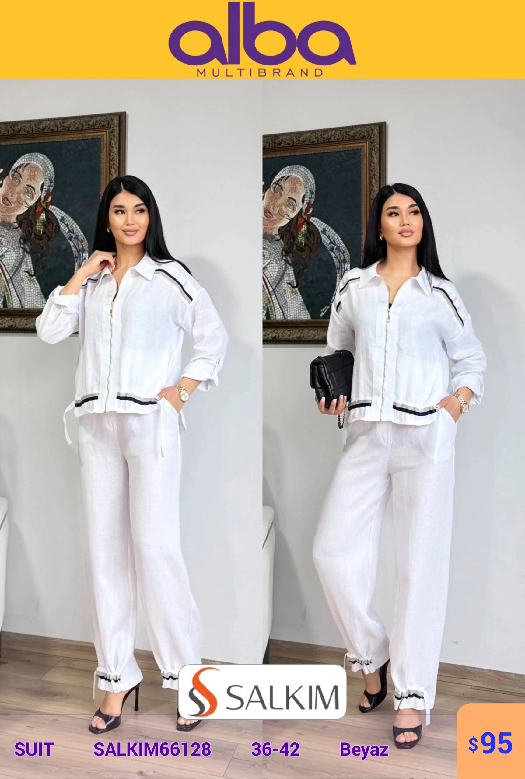 Бежевый костюм: куртка и брюки с белыми вставками