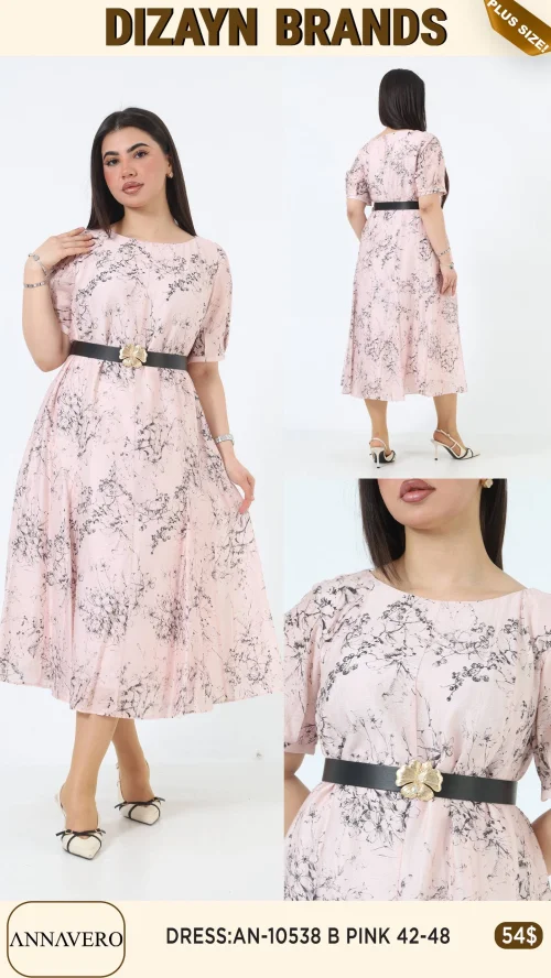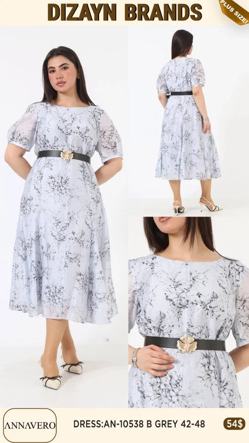 Платье с принтом и поясом, длина миди