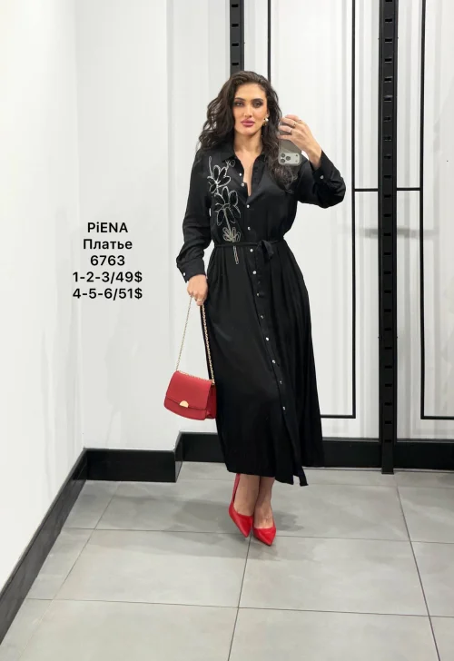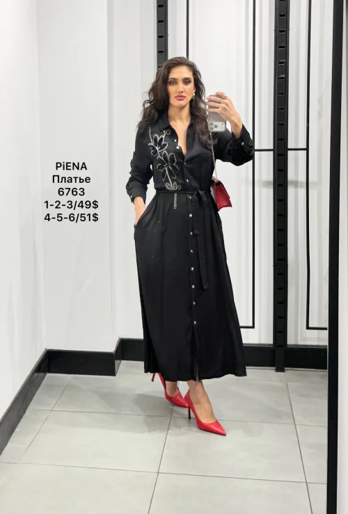 Платье‑рубашка макси с вышивкой и поясом