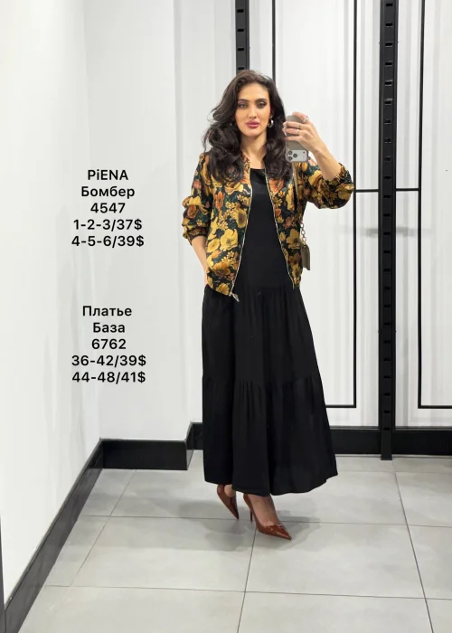 Бомбер с цветочным принтом на молнии, свободный силуэт