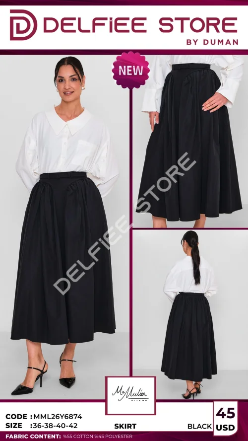 Черная юбка с поясом из хлопка и полиэстера