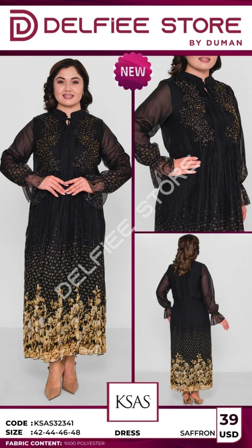 Платье черное с серым принтом и вышивкой