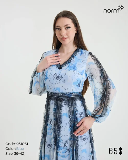 Легкое платье макси из шифона с кружевной отделкой