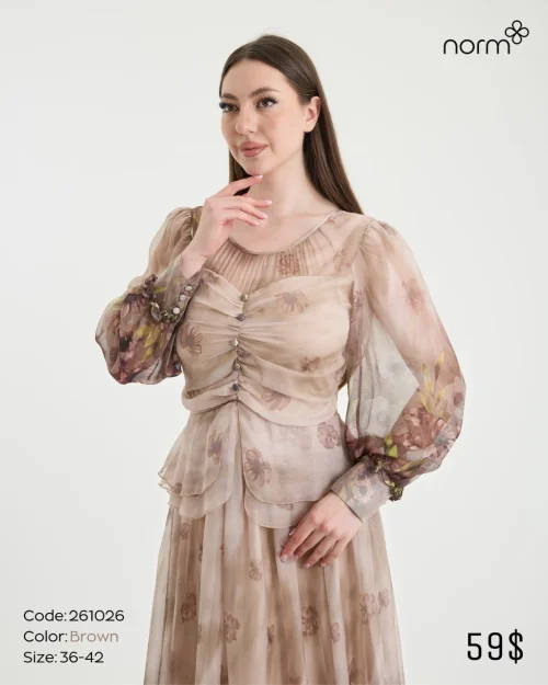 Длинное платье с цветочным принтом и сборкой