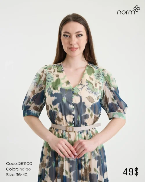 Макси-платье с цветочным абстрактным принтом и поясом