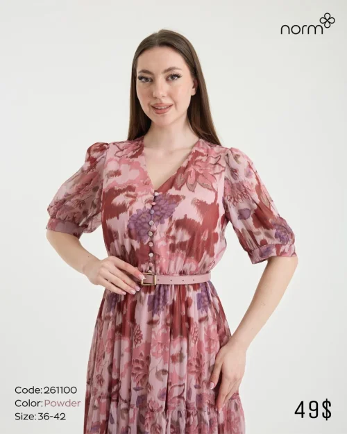 Макси-платье с цветочным абстрактным принтом и поясом