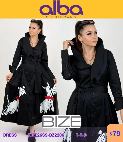 Длинное платье на пуговицах с широким воротником и принтом