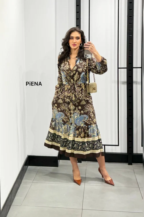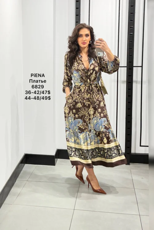 Платье-макси с узором и поясом