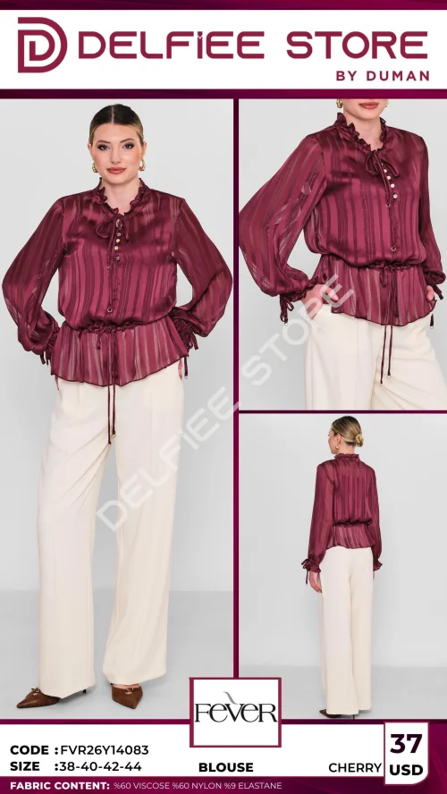 Блузка с длинными рукавами с затяжками и рюшами