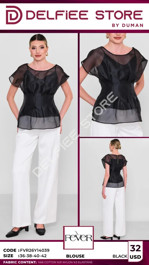 Прозрачная черная блузка с корсетным кроем