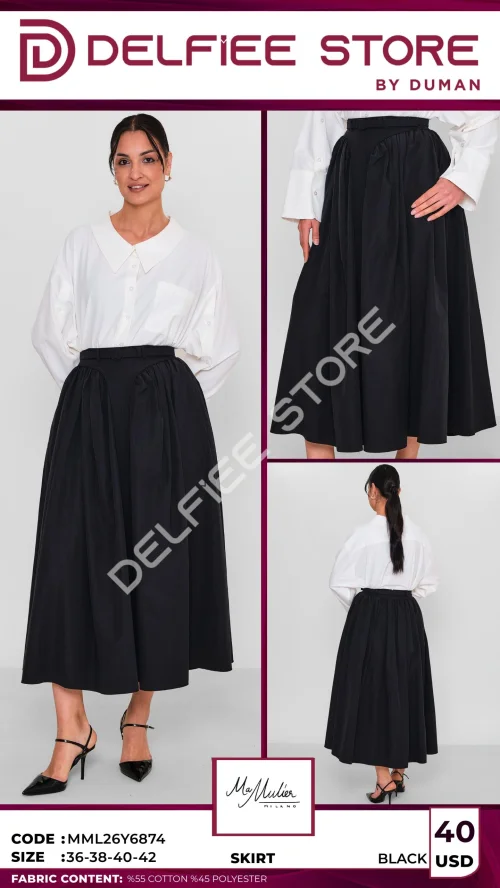 Черная юбка с поясом из хлопка и полиэстера
