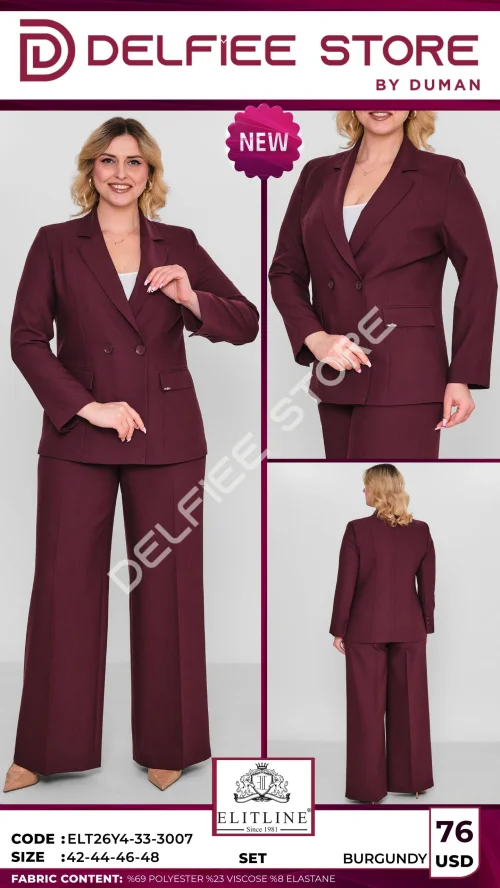 Бордовый комплект с жакетом и брюками